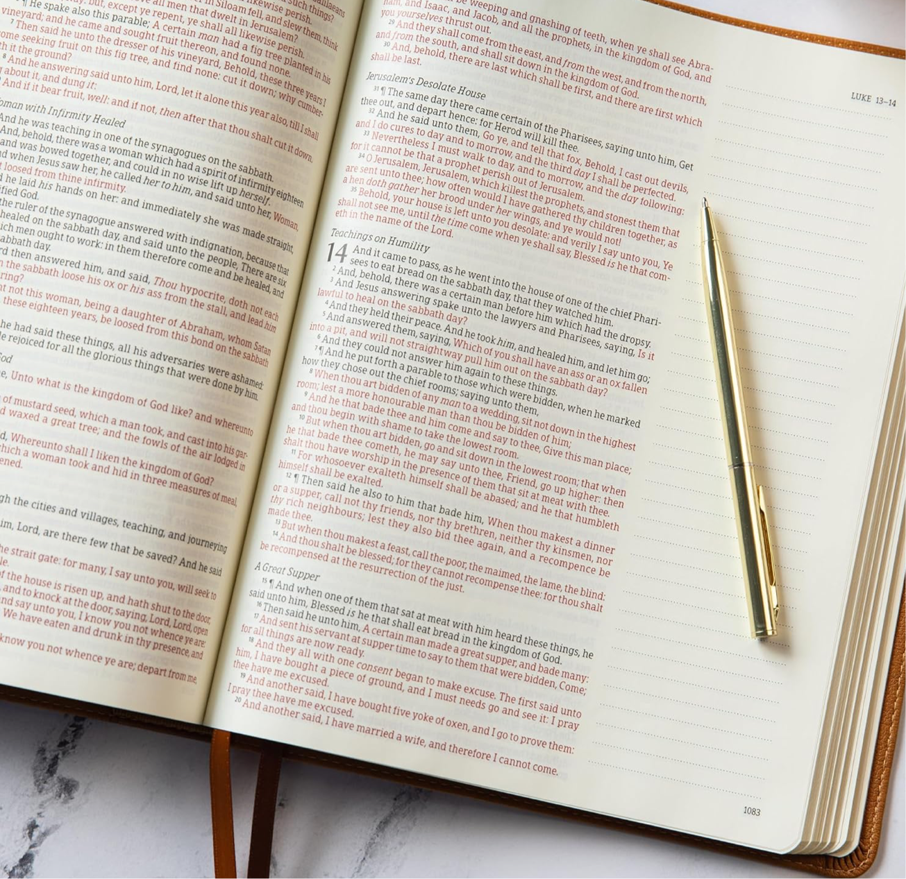KJV Notetaking Bible, Large Print Edition, Camel LeatherTouch, KJV Holy Bible, Red Letter, Wide Margins, Journaling Space, Single-Column, Reading Plan, Easy-to-Read