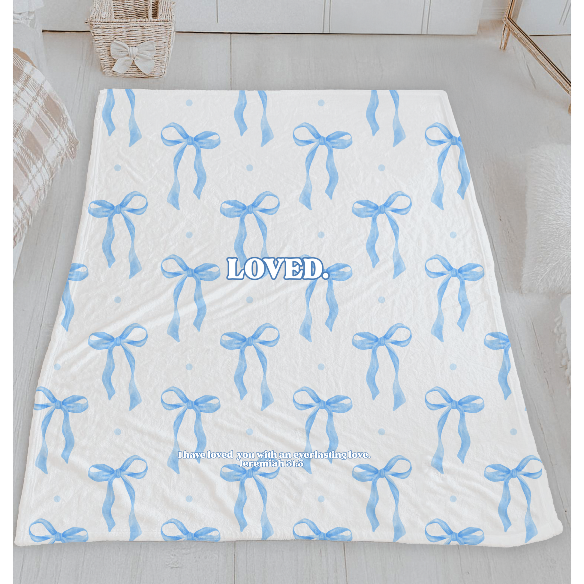 A gentle reminder wrapped in soft blue—you are deeply, unconditionally LOVED. With a simple bow design and timeless message, this cozy velveteen plush blanket brings comfort and truth into every space. Perfect for quiet moments, restful nights, or gifting someone who needs to feel seen and cherished.