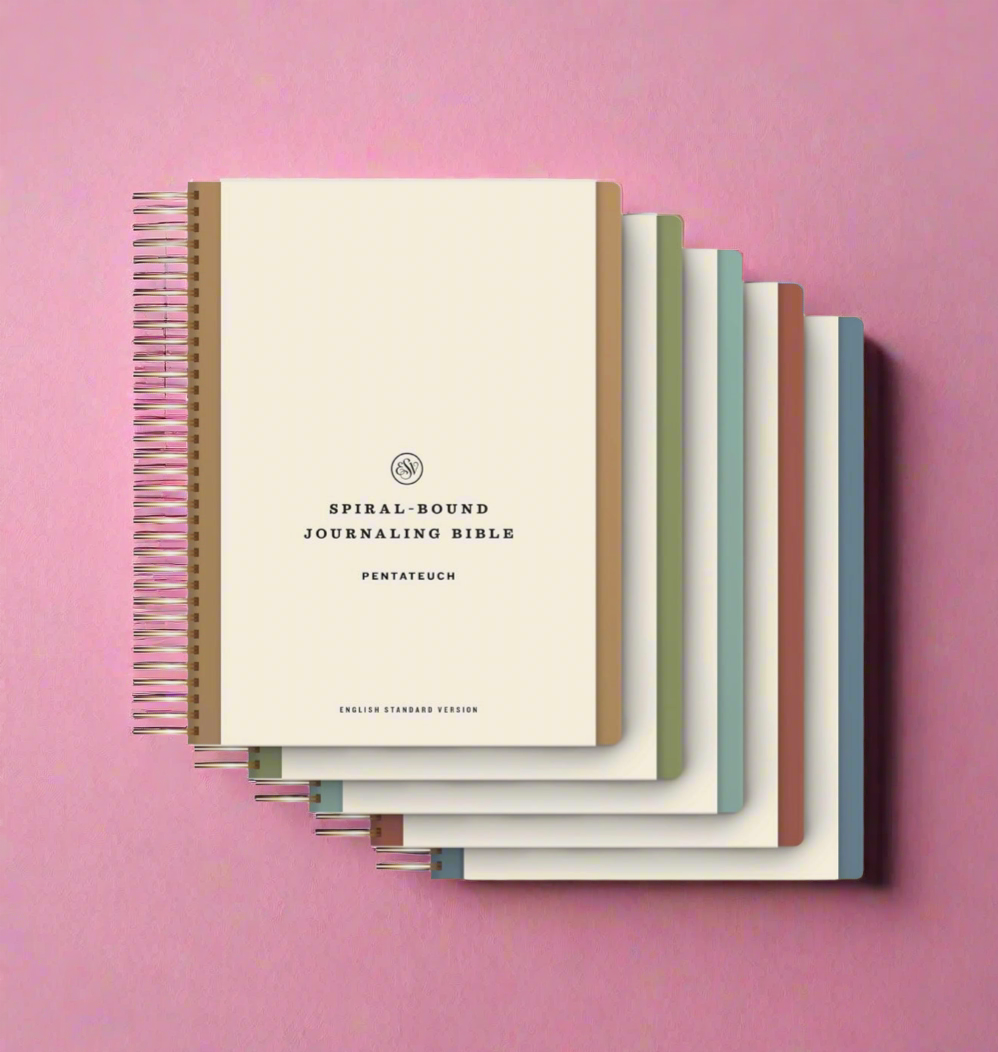 The ESV Spiral-Bound Journaling Bible, Five-Volume Set was created from the ground up to facilitate in-depth note-taking. Divided into 5 individual volumes―Pentateuch; Historical Books; Poetry; Prophets; and New Testament―this set features the complete ESV Bible text in an inviting, easy-to-read layout with generous space for notes. The spiral-bound format lies flat for comfortable reading and writing. Designed to encourage deeper interaction with Scripture, this journaling edition is ideal for recording prayers and reflections.