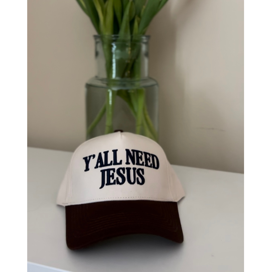 The "Y'all Need Jesus" hat is a stylish and versatile cap that is more than just